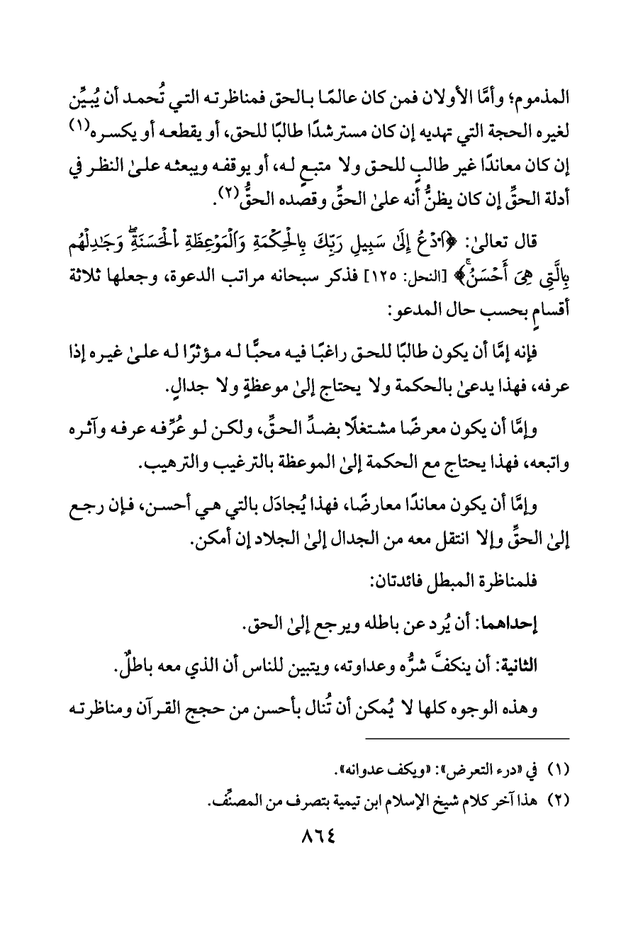 فإنه إمَّا أن يكون طالبًا للحق راغبًا فيه محبًّا له مؤثرًا له على غيره إذا عرفه، فهذا يدعى بالحكمة ولا يحتاج إلى موعظةٍ ولا جدالٍ.