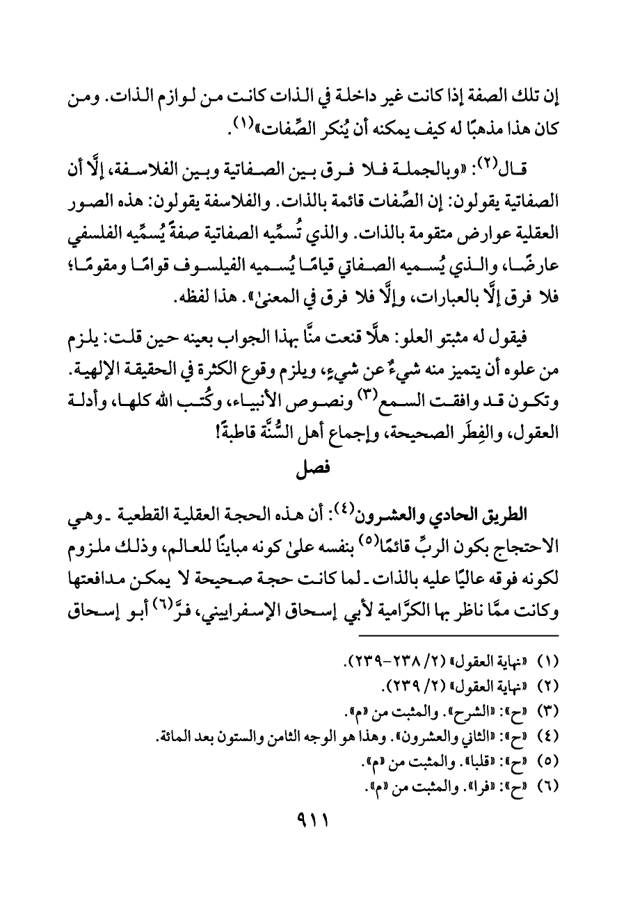 (¬١) «نهاية العقول» (٢/ ٢٣٨ - ٢٣٩).