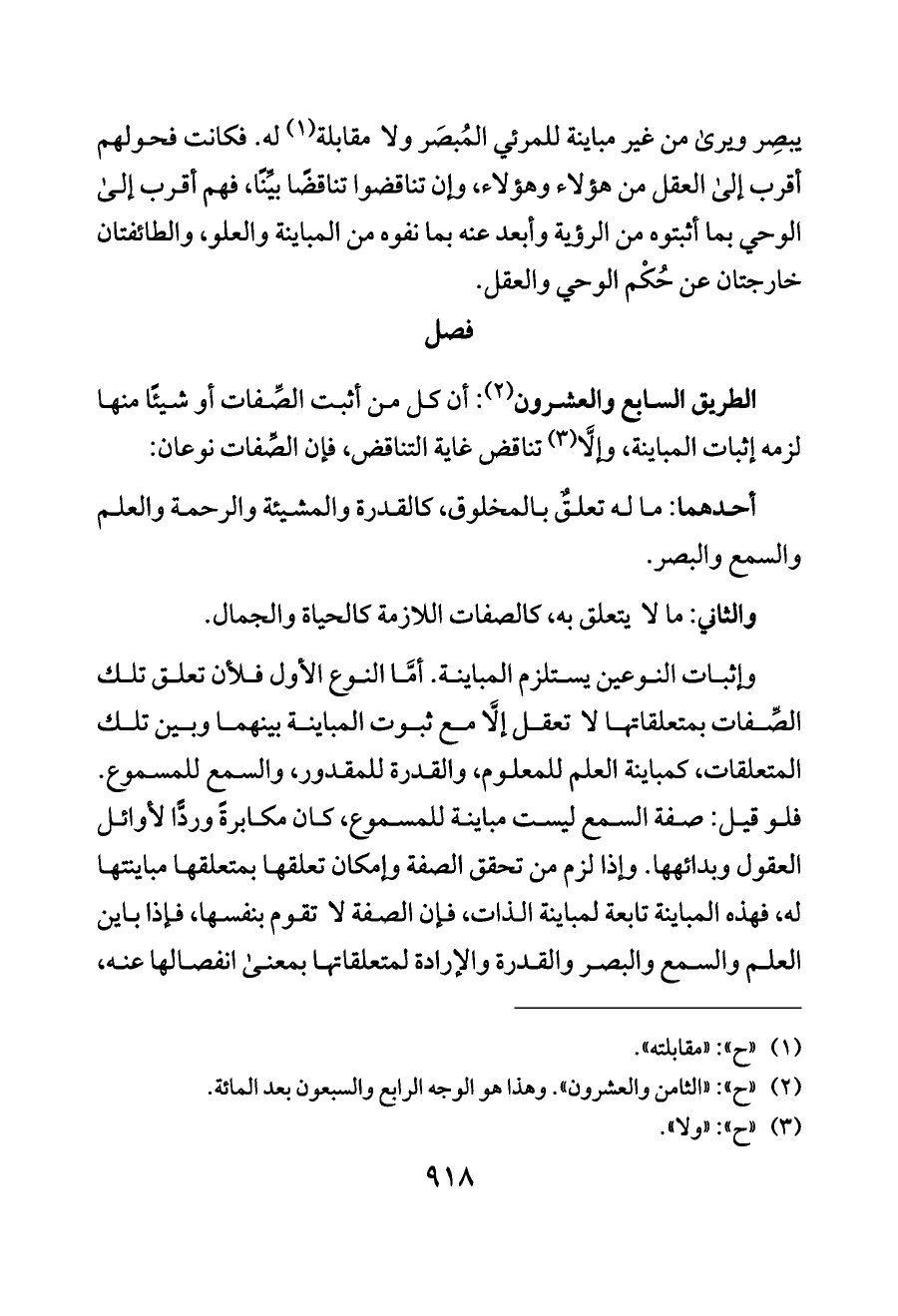 الطريق السابع والعشرون (¬٢): أن كل من أثبت الصِّفات أو شيئًا منها لزمه إثبات المباينة، وإلَّا (¬٣) تناقض غاية التناقض، فإن الصِّفات نوعان: