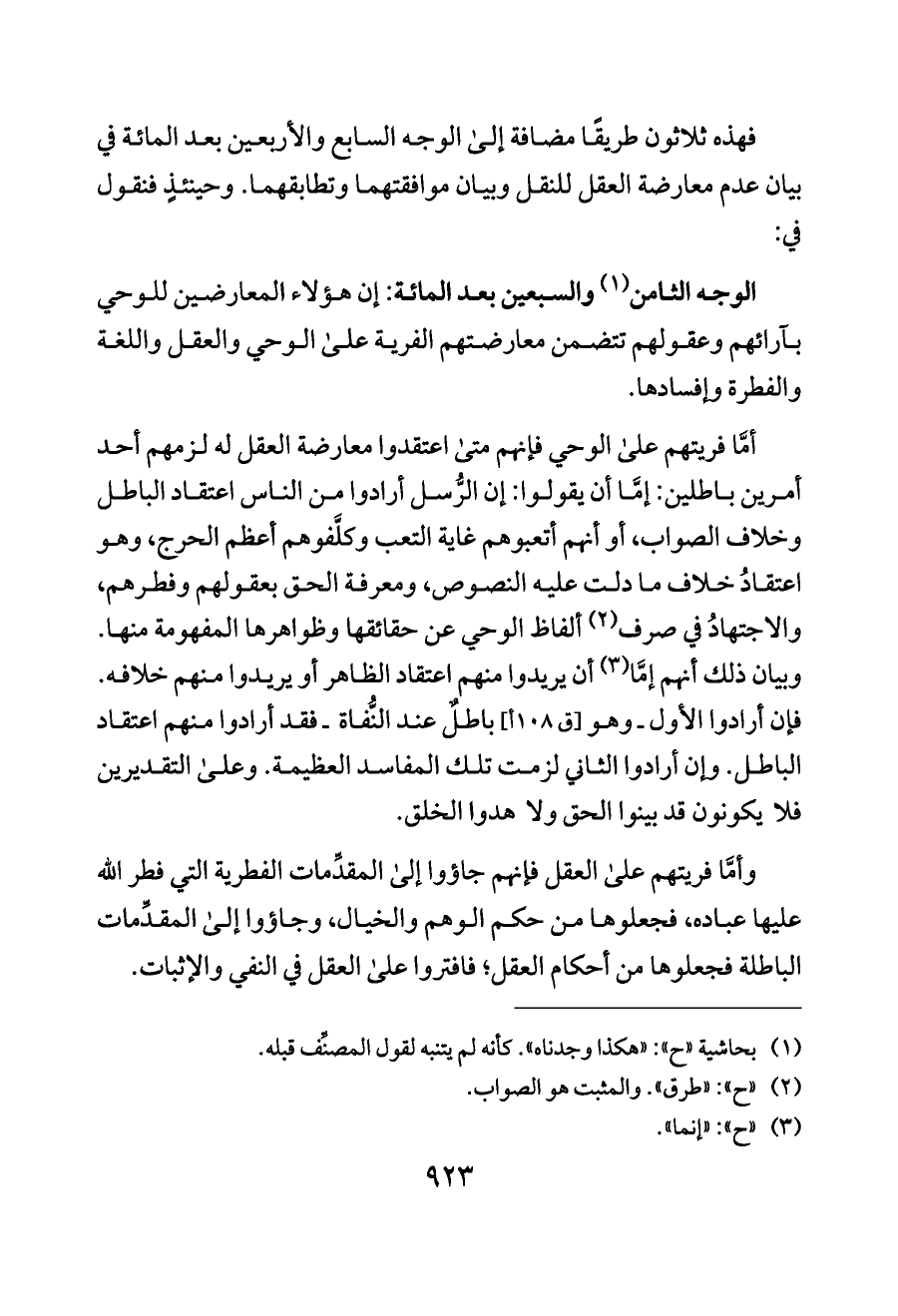 فهذه ثلاثون طريقًا مضافة إلى الوجه السابع والأربعين بعد المائة في بيان عدم معارضة العقل للنقل وبيان موافقتهما وتطابقهما. وحينئذٍ فنقول في: