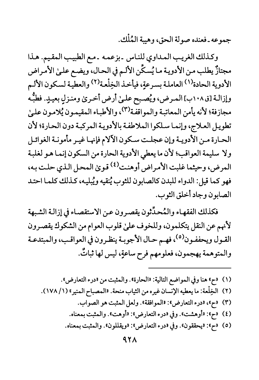 (¬٣) «ح»، «درء التعارض»: «الموافقة». ولعل المثبت هو الصواب.