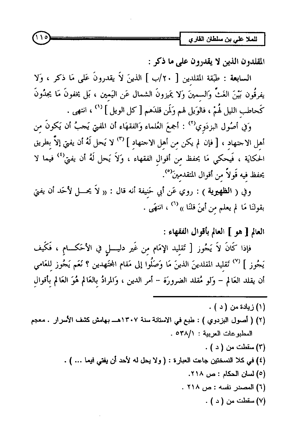 (¬2) (أصول البزدوي): طبع في الاستانة سنة 1307هـ بهامش كشف الأسرار. معجم المطبوعات العربية: 1/ 538.