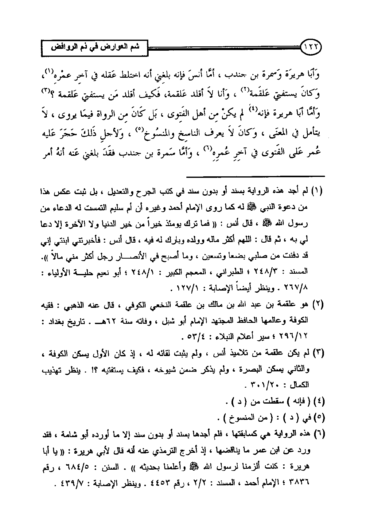 (¬3) لم يكن علقمة من تلاميذ أنس، ولم يثبت لقائه له، إذ كان الأول يسكن الكوفة، والثاني يسكن البصرة، ولم يذكر ضمن شيوخه، فكيف يستفتيه؟!. ينظر تهذيب الكمال: 20/ 301.