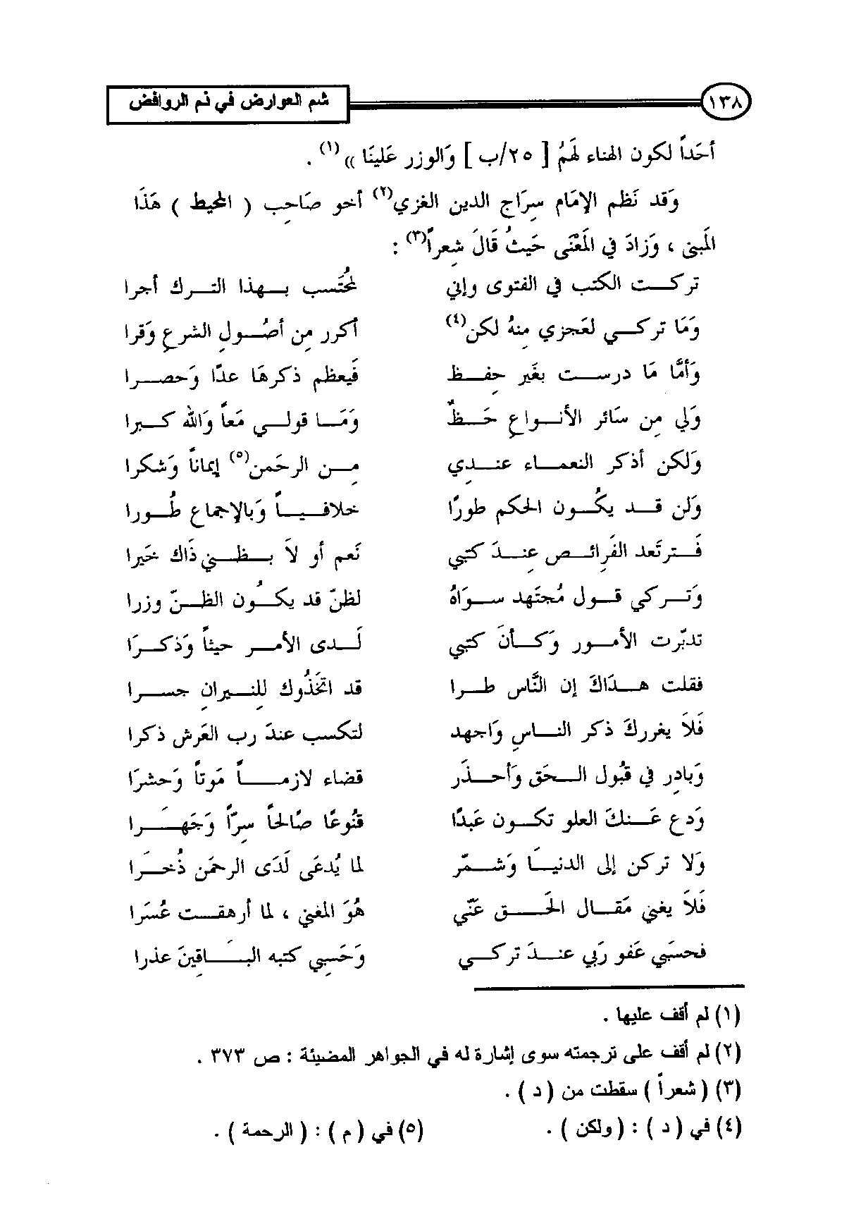 وَقد نَظم الإمَام سِرَاج الدين الغزي (¬2) أخو صَاحِب (المحيط) هَذَا المَبنى وَزادَ في المَعْنَى حَيثُ قَالَ شِعراً (¬3):