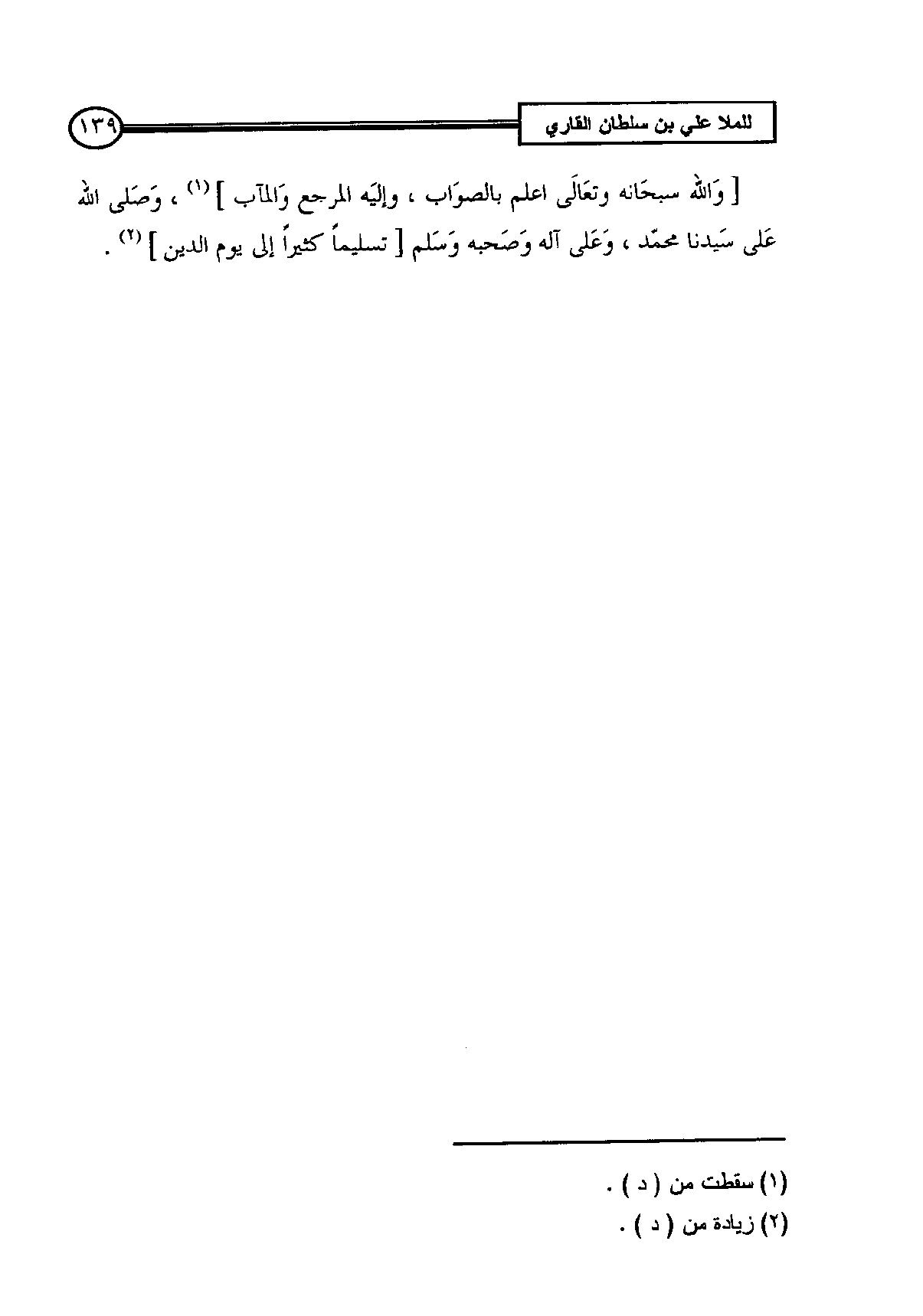 [وَالله سبحَانه وتعَالَى اعلم بالصوَاب، وإليَه المرجع وَالمآب] (¬1)، وَصَلى الله عَلى سَيدنا محمّد، وَعَلى آله وَصَحبه وَسَلم [تسليماً كثيراً إلى يوم الدين] (¬2).