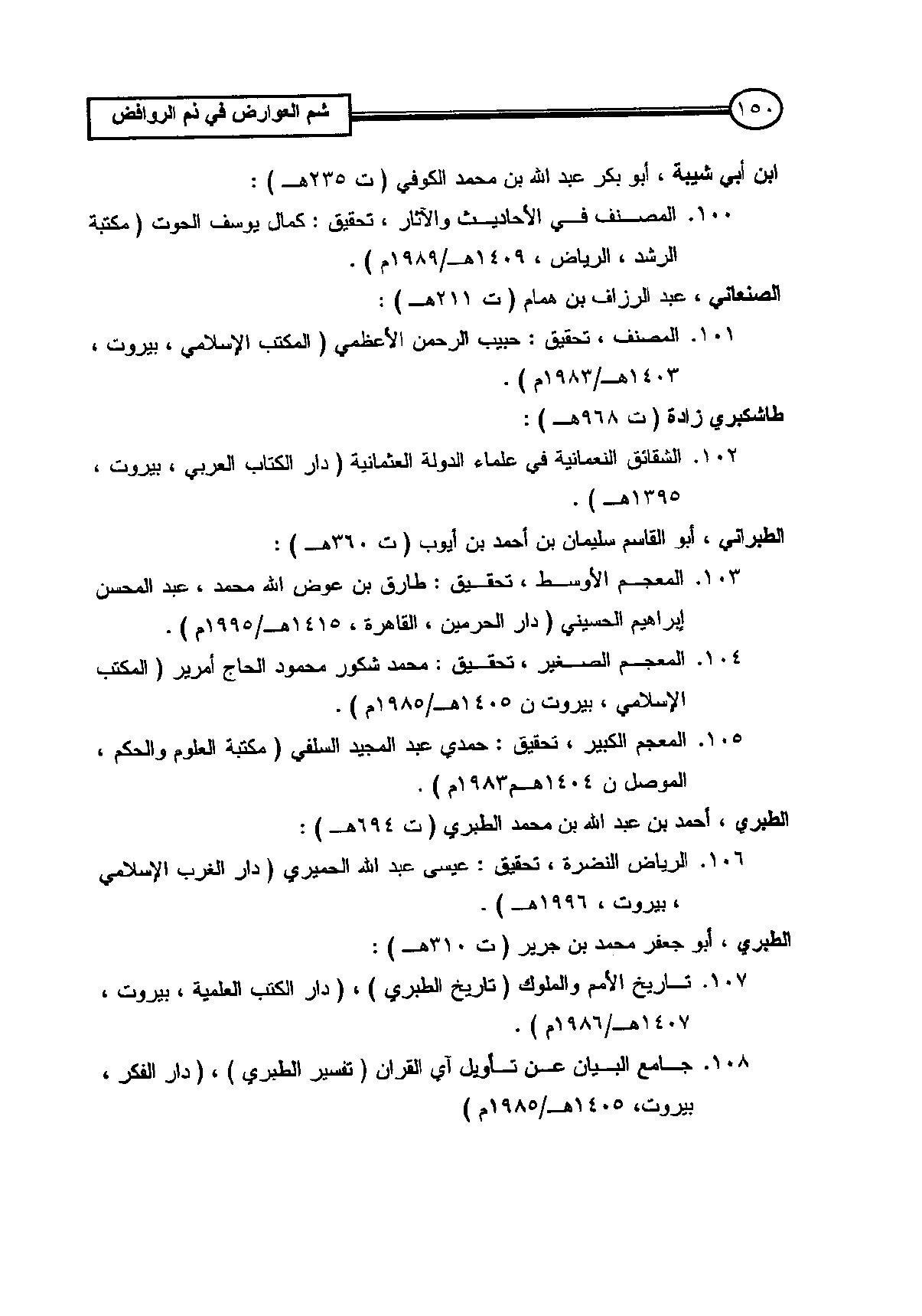 104. المصنف، تحقيق: حبيب الرحمن الأعظمي (المكتب الإسلامي، بيروت، 1403هـ/1983م).