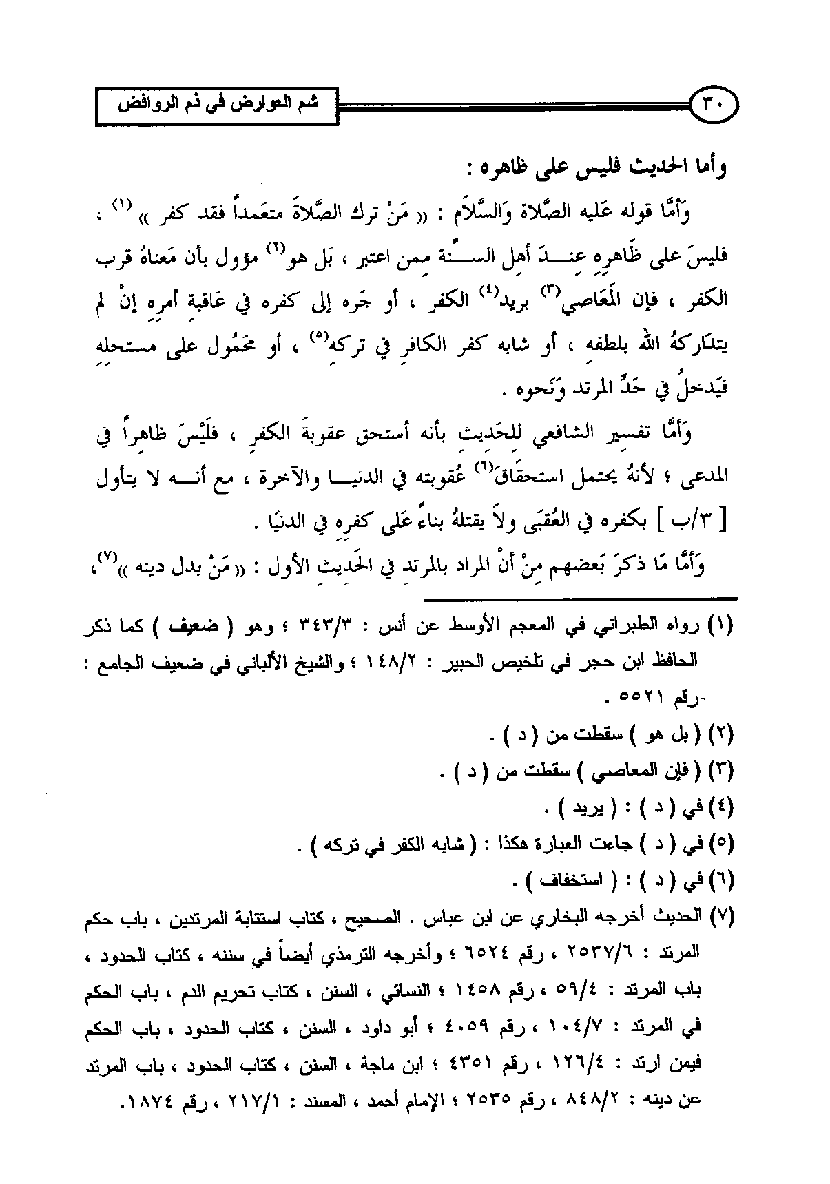 (¬5) في (د) جاءت العبارة هكذا: (شابه الكفر في تركه).