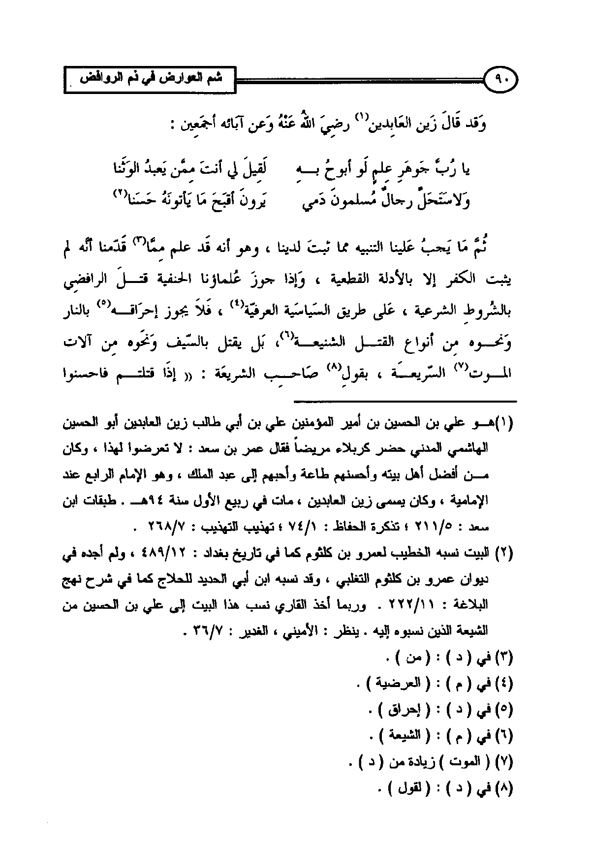 وَقد قَالَ زَين العَابِدين (¬1) - رضي الله عنه - وَعن آبَائه أجمَعِين: