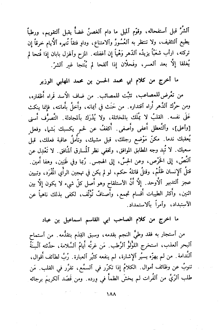ما أخرج من كلام أبي محمد الحسن بن محمد المهلبي الوزير