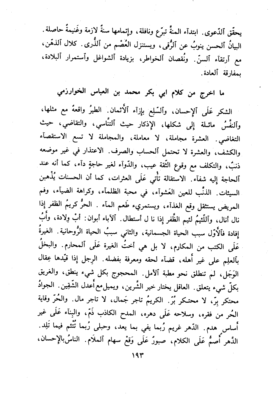 ما أخرج من كلام أبي بكر محمد بن العباس الخوارزمي