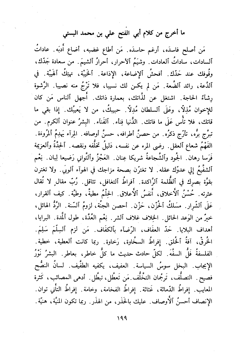 ما أخرج من كلام أبي الفتح علي بن محمد البستي