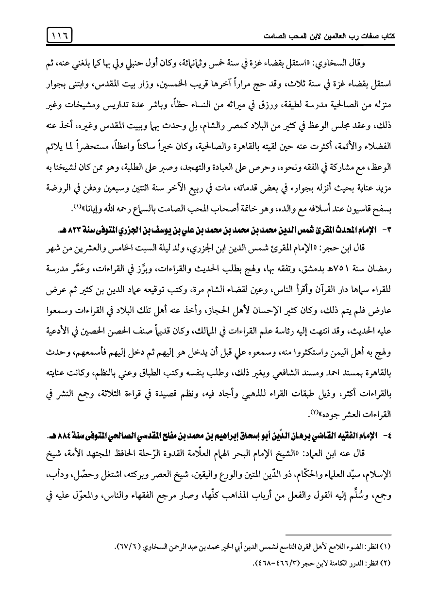 ٤ - الإمام الفقيه القاضي برهان الدين أبو إسحاق إبراهيم بن محمد بن مفلح المقدسي الصالحي المتوفى سنة ٨٨٤ هـ.