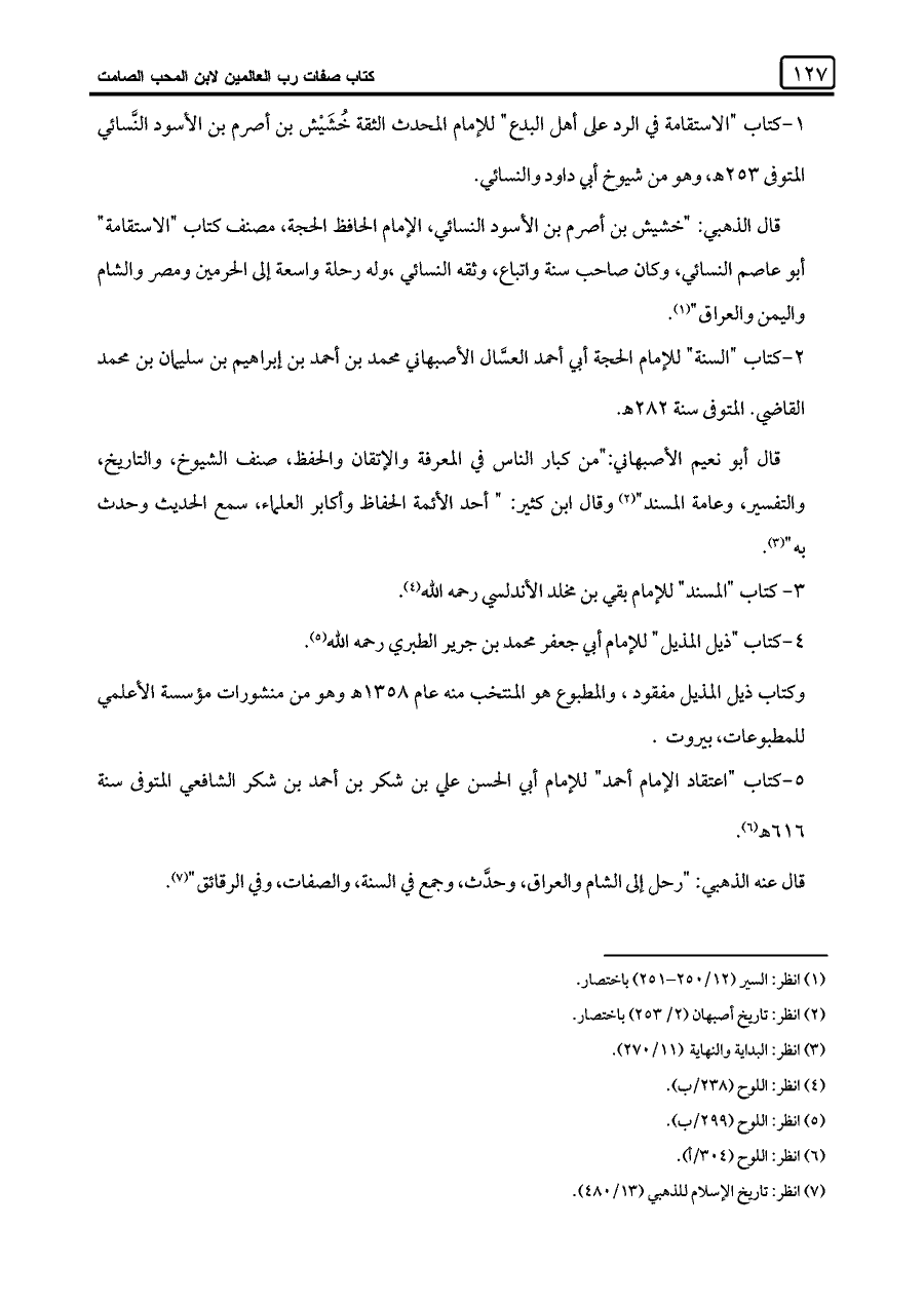 ٢ - كتاب "السنة" للإمام الحجة أبي أحمد العسَّال الأصبهاني محمد بن أحمد بن إبراهيم بن سليمان بن محمد القاضي. المتوفى سنة ٢٨٢ هـ.