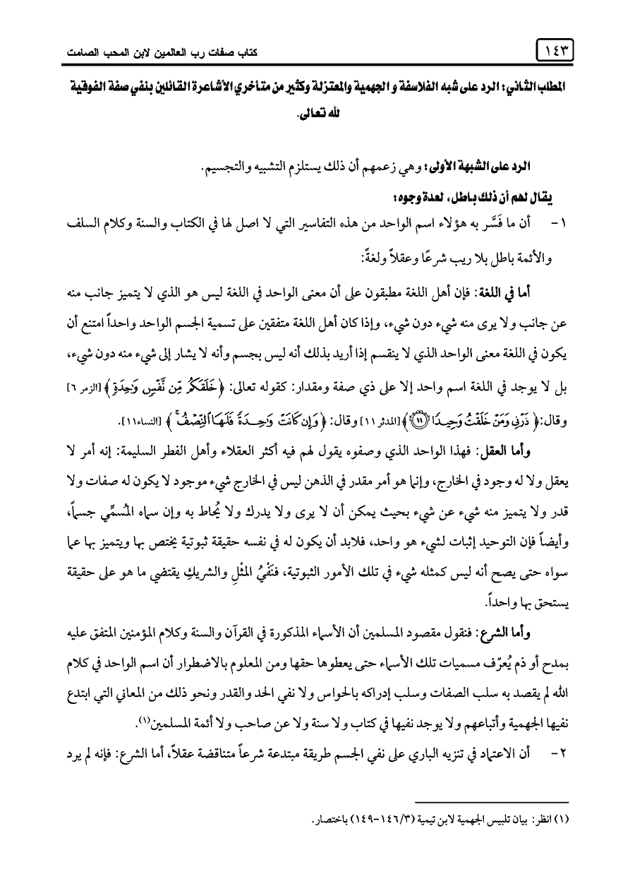 (¬١) انظر: بيان تلبيس الجهمية لابن تيمية (٣/ ١٤٦ - ١٤٤) باختصار.