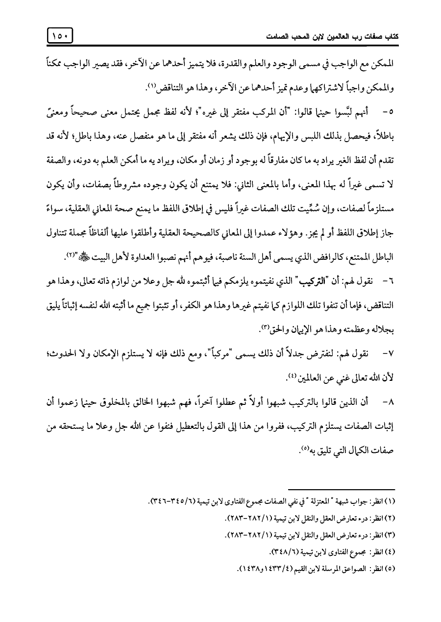 (¬١) انظر: جواب شبهة "المعتزلة" في نفي الصفات مجموع الفتاوى لابن تيمية (٦/ ٣٤٥ - ٣٤٦).