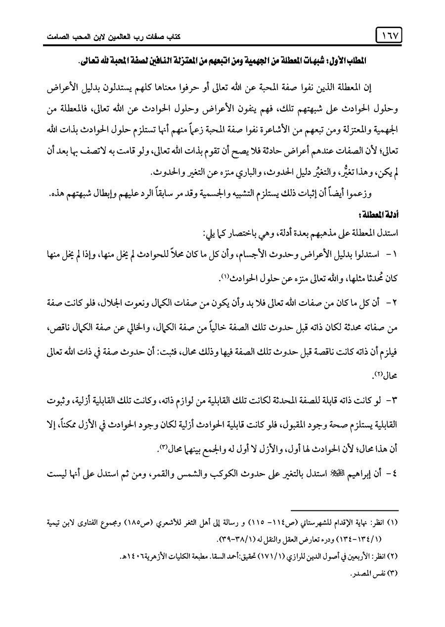 (¬١) انظر: نهاية الإقدام للشهرستاني (ص ١١٤ - ١١٥) و رسالة إلى أهل الثغر للأشعري (ص ١٨٥) ومجموع الفتاوى لابن تيمية (١/ ١٣٤ - ١٣٤) ودرء تعارض العقل والنقل له (١/ ٣٨ - ٣٩).