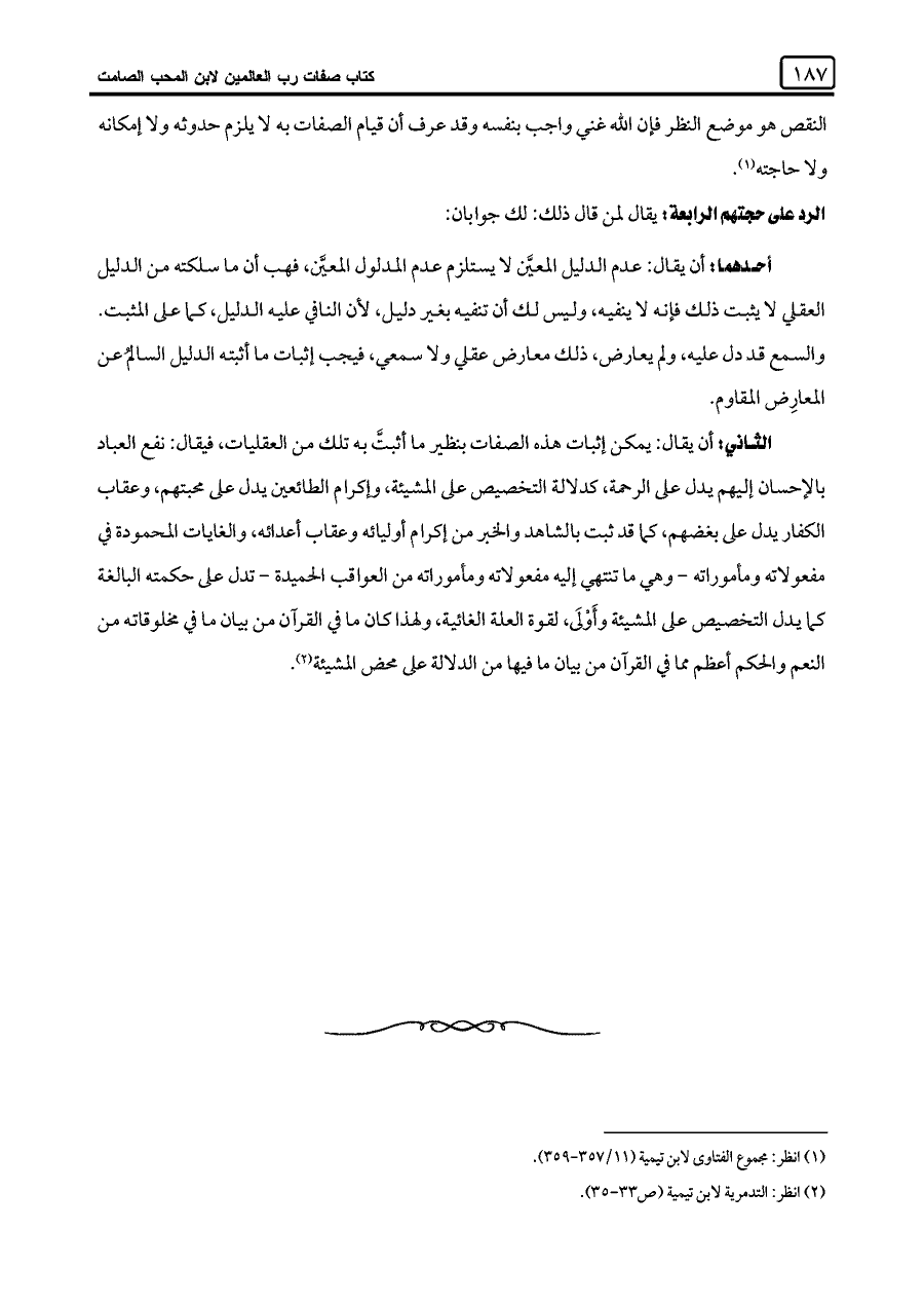 (¬٢) انظر: التدمرية لابن تيمية (ص ٣٣ - ٣٥).