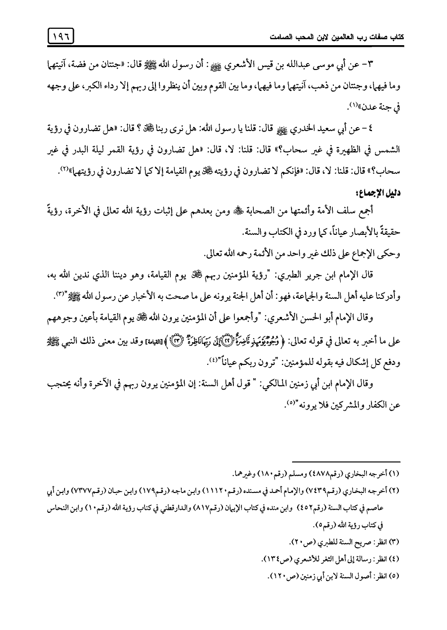 (¬٢) أخرجه البخاري (رقم ٧٤٣٩) والإمام أحمد في مسنده (رقم ١١١٢٠) وابن ماجه (رقم ١٧٩) وابن حبان (رقم ٧٣٧٧) وابن أبي عاصم في كتاب السنة (رقم ٤٥٢) وابن منده في كتاب الإيمان (رقم ٨١٧) والدارقطني في كتاب رؤية اللَّه (رقم ١٠) وابن النحاس في كتاب رؤية اللَّه (رقم ٥).