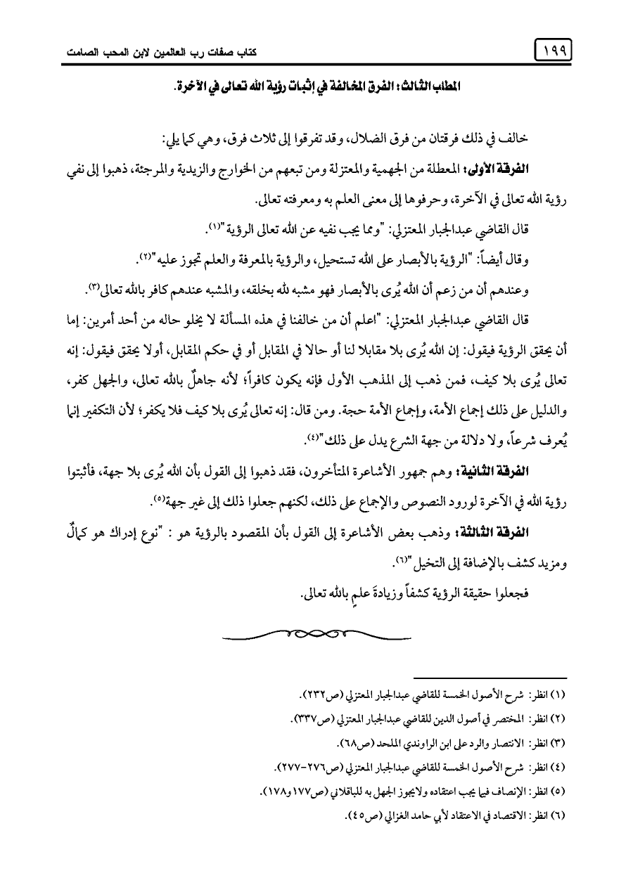 (¬١) انظر: شرح الأصول الخمسة للقاضي عبد الجبار المعتزلي (ص ٢٣٢).