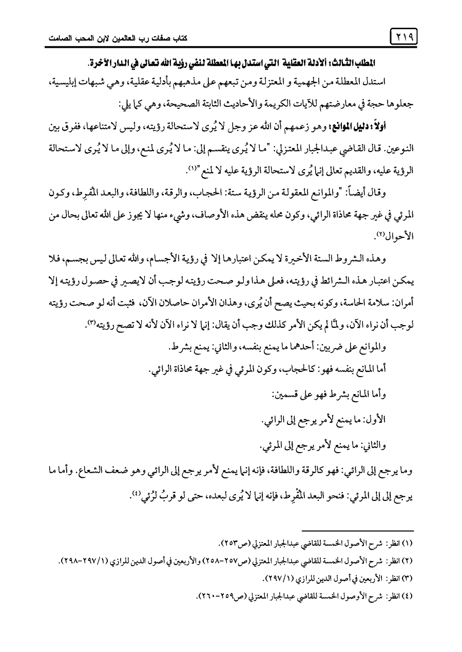 (¬٢) انظر: شرح الأصول الخمسة للقاضي عبد الجبار المعتزلي (ص ٢٥٧ - ٢٥٨) والأربعين في أصول الدين للرازي (١/ ٢٩٧ - ٢٩٨).