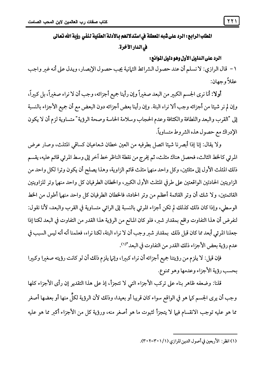 (¬١) انظر: الأربعين في أصول الدين للرازي (١/ ٣٠١ - ٣٠٢).