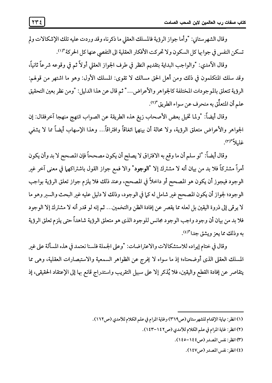 (¬١) انظر: نهاية الإقدام للشهرستاني (ص ٣٢٩) وغاية المرام في علم الكلام للآمدي (ص ١٦٢).