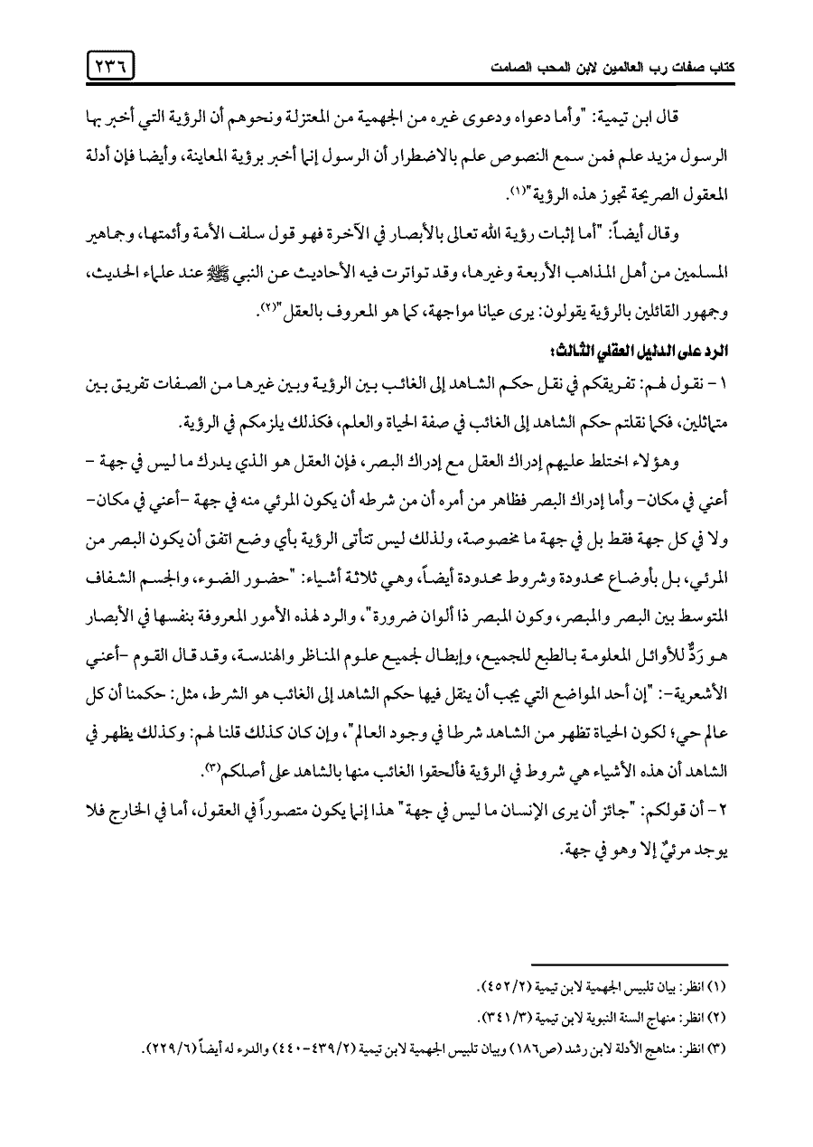 (¬٣) انظر: مناهج الأدلة لابن رشد (ص ١٨٦) وبيان تلبيس الجهمية لابن تيمية (٢/ ٤٣٩ - ٤٤٠) والدرء له أيضًا (٦/ ٢٢٩).