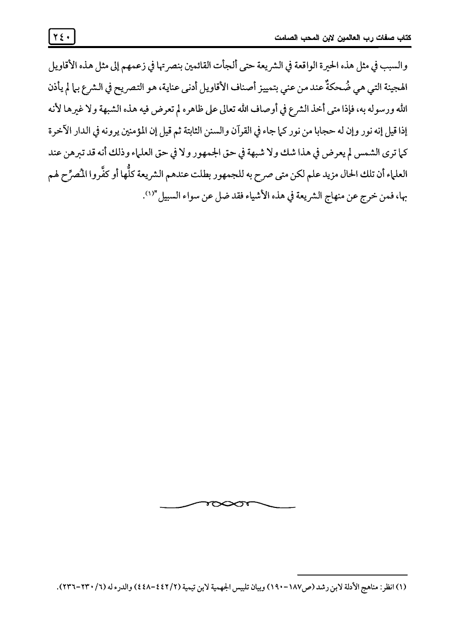 (¬١) انظر: مناهج الأدلة لابن رشد (ص ١٨٧ - ١٩٠) وبيان تلبيس الجهمية لابن تيمية (٦/ ٢٣٠ - ٢٣٦).