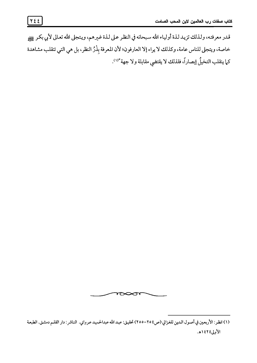 (¬١) انظر: الأربعين في أصول الدين للغزالي (ص ٢٥٤ - ٢٥٥) تحقيق: عبد اللَّه عبد الحميد عرواني. الناشر: دار القلم دمشق. الطبعة الأولى ١٤٢٤ هـ.