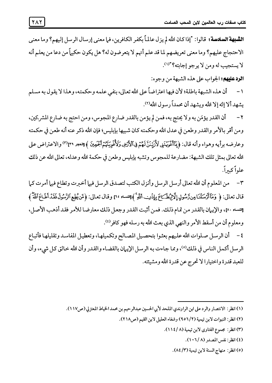 (¬٢) انظر: النبوات لابن تيمية (٢/ ٩٥٦) وشفاء العليل لابن القيم (ص ٢١٨).