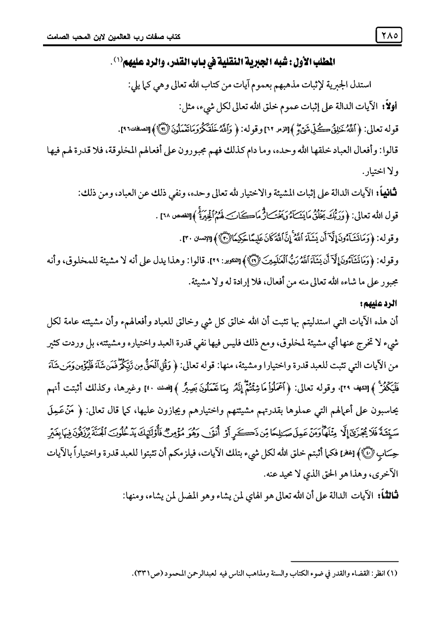 المطلب الأول: شبه الجبرية النقلية في باب القدر، والرد عليهم (¬١).