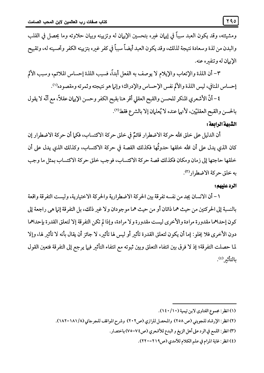 (¬٤) انظر: غاية المرام في علم الكلام للآمدي (ص ٢١٩ - ٢٢٠).
