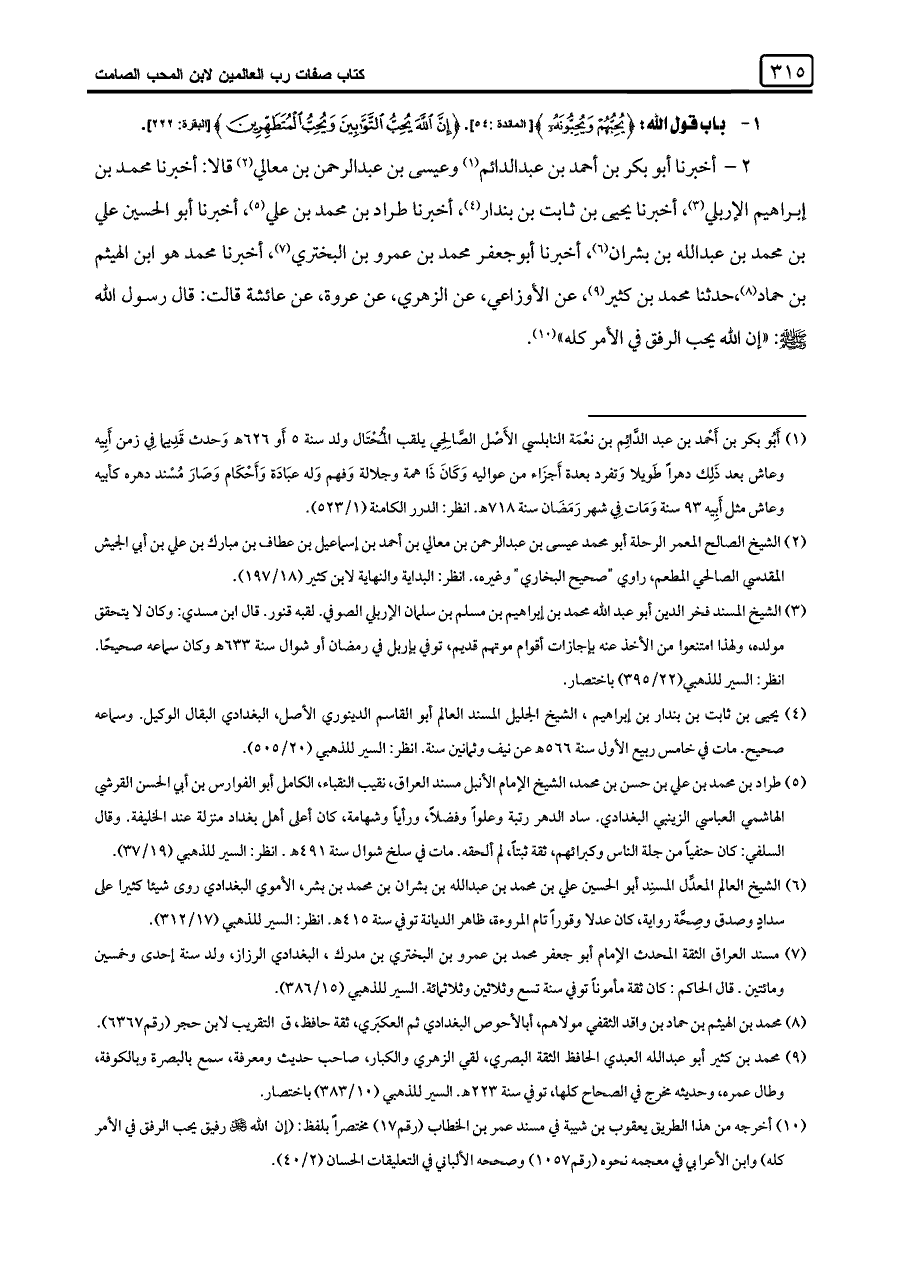 كتاب صفات رب العالمين - ابن المحب الصامت - ناقص (اسم الجزء: 1)