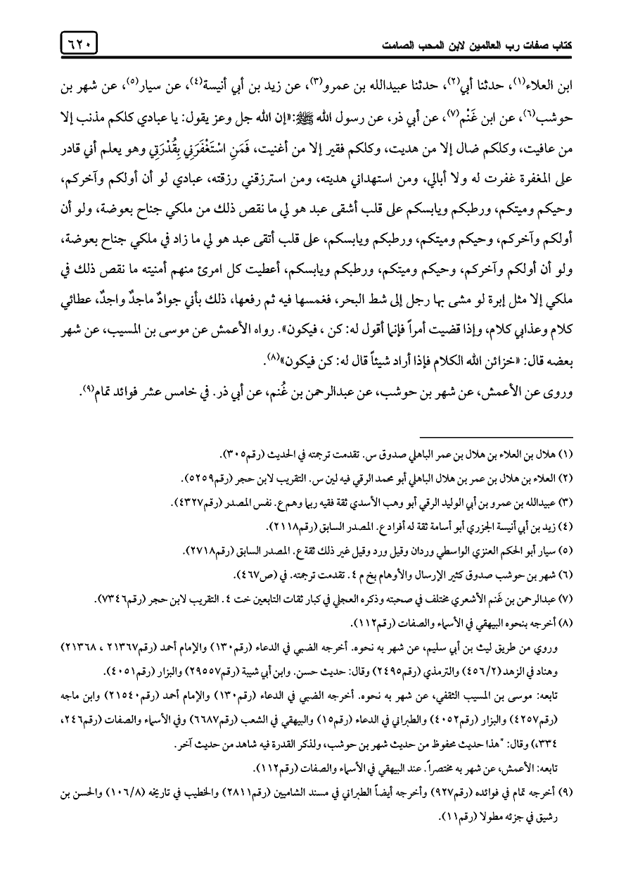 كتاب صفات رب العالمين - ابن المحب الصامت - ناقص (اسم الجزء: 1)