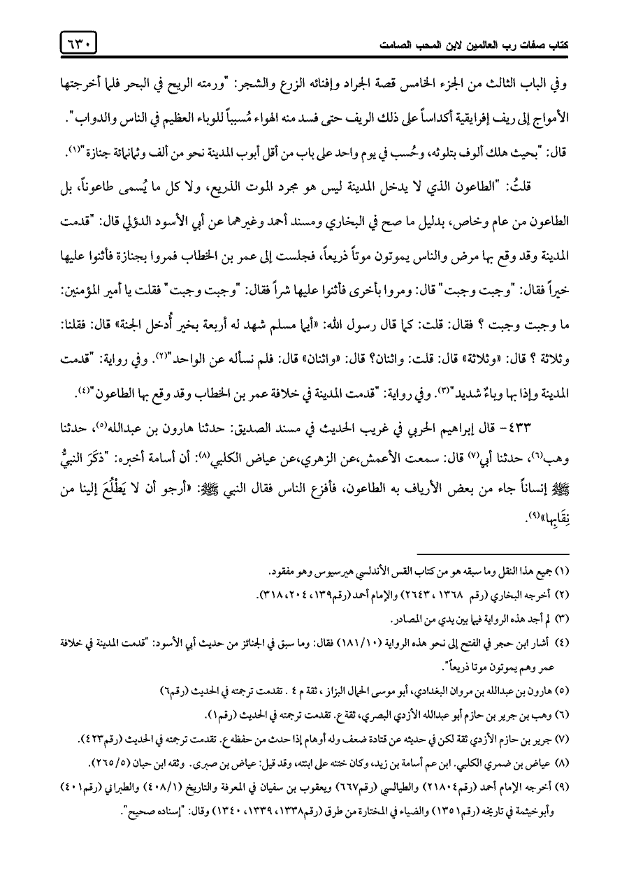 (¬٤) أشار ابن حجر في الفتح إلى نحو هذه الرواية (١٠/ ١٨١) فقال: وما سبق في الجنائز من حديث أبي الأسود: "قدمت المدينة في خلافة عمر وهم يموتون موتا ذريعًا".