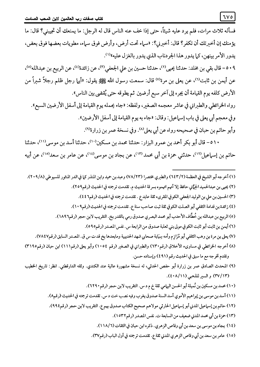 كتاب صفات رب العالمين - ابن المحب الصامت - ناقص (اسم الجزء: 1)