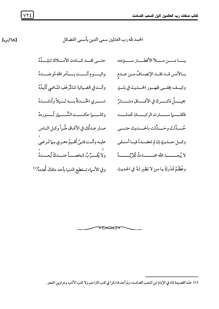 (¬١) هذه القصيدة ثناء في الإمام ابن المحب الصامت، ولم أجد لها ذكرا في كتب التراجم ولا كتب الأدب ودواوين الشعر.