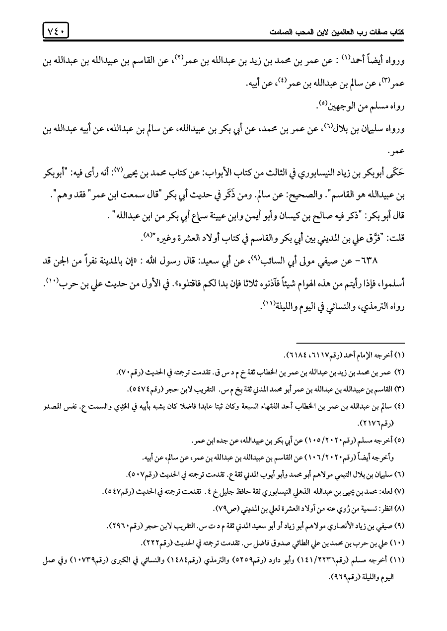 (¬٤) سالم بن عبد اللَّه بن عمر بن الخطاب أحد الفقهاء السبعة وكان ثبتا عابدا فاضلا كان يشبه بأبيه في الهَدِي والسمت ع. نفس المصدر (رقم ٢١٧٦).