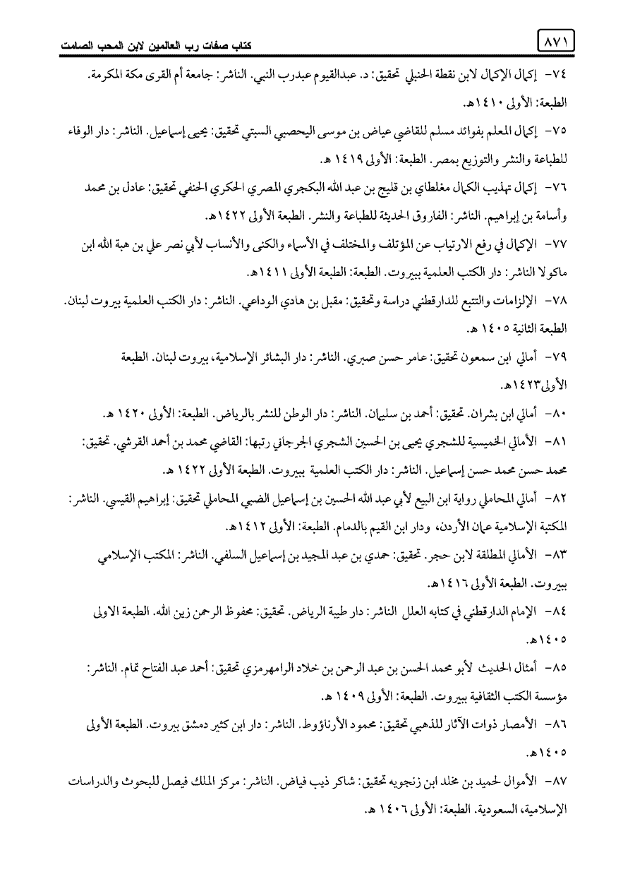 ٧٤ - إكمال الإكمال لابن نقطة الحنبلي تحقيق: د. عبد القيوم عبد رب النبي. الناشر: جامعة أم القرى مكة المكرمة. الطبعة: الأولى ١٤١٠ هـ.