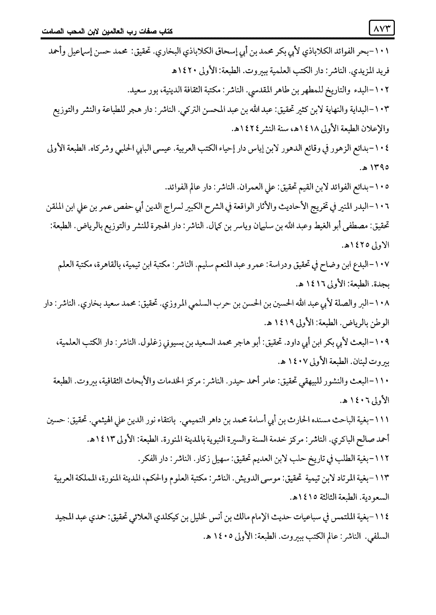 ١٠٩ - البعث لأبي بكر ابن أبي داود. تحقيق: أبو هاجر محمد السعيد بن بسيوني زغلول. الناشر: دار الكتب العلمية، بيروت لبنان. الطبعة الأولى ١٤٠٧ هـ.