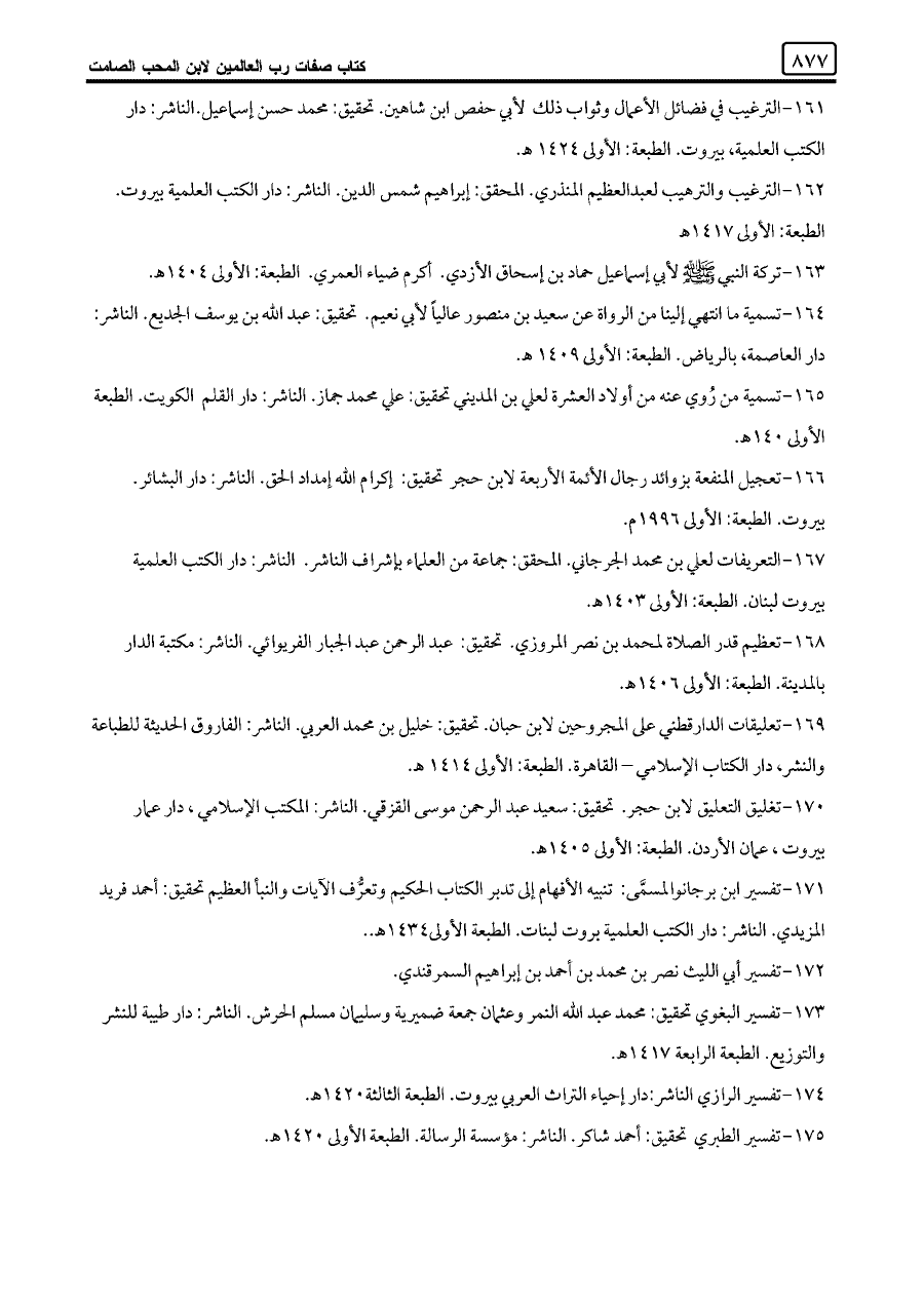 ١٦١ - الترغيب في فضائل الأعمال وثواب ذلك لأبي حفص ابن شاهين. تحقيق: محمد حسن إسماعيل. الناشر: دار الكتب العلمية، بيروت. الطبعة: الأولى ١٤٢٤ هـ.