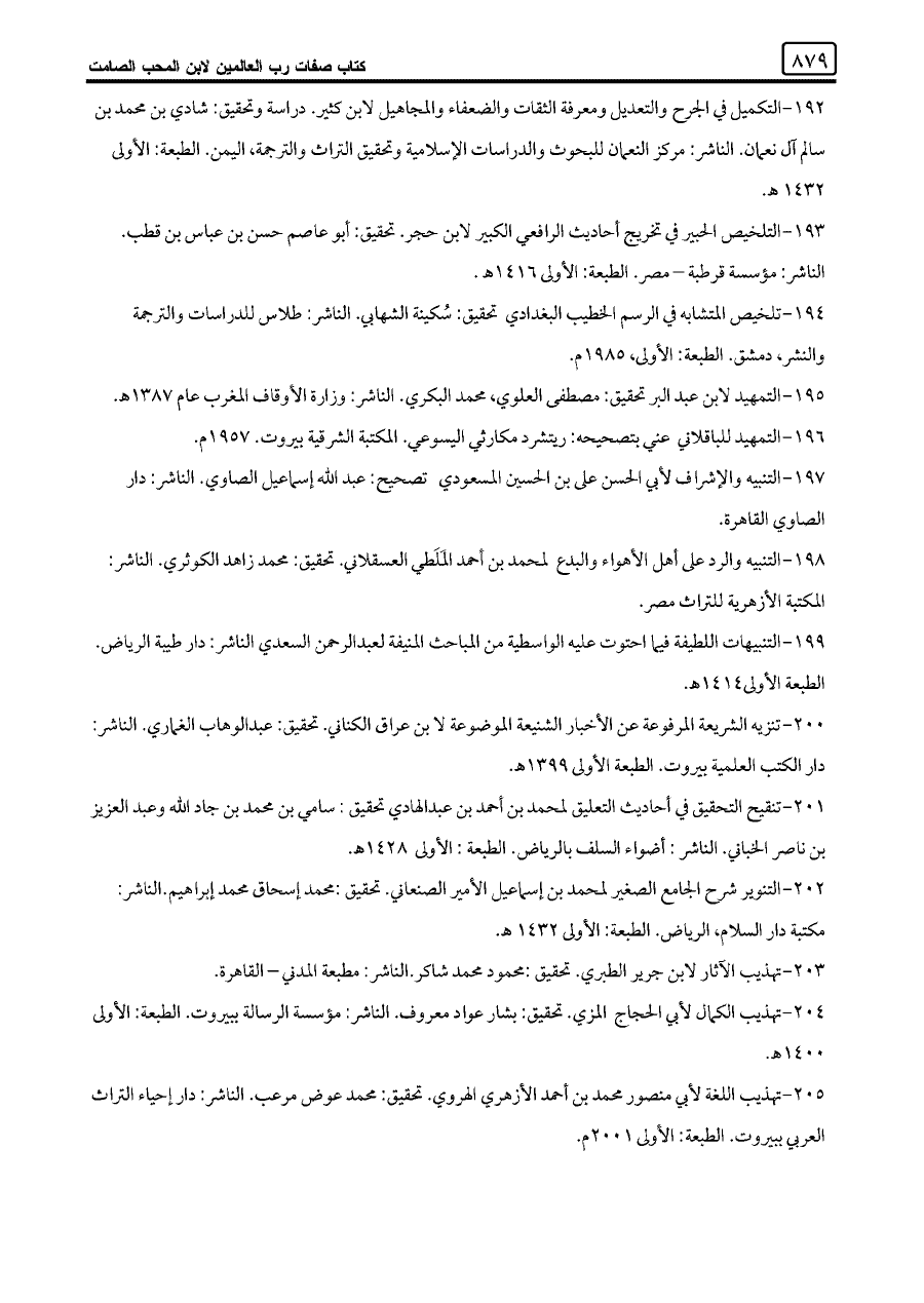 ١٩٥ - التمهيد لابن عبد البر تحقيق: مصطفى العلوي، محمد البكري. الناشر: وزارة الأوقاف المغرب عام ١٣٨٧ هـ.