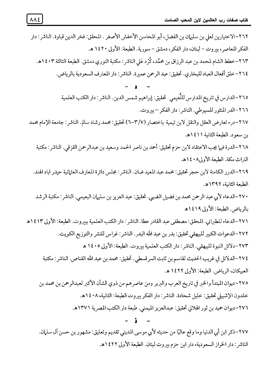 ٢٧٧ - ذكر ابن أبي الدنيا وما وقع عاليًا من حديثه لأبي موسى المديني تقديم وتعليق: مشهور بن حسن آل سلمان. الناشر: دار الخراز السعودية، دار ابن حزم بيروت لبنان. الطبعة الأولى ١٤٢٢ هـ.