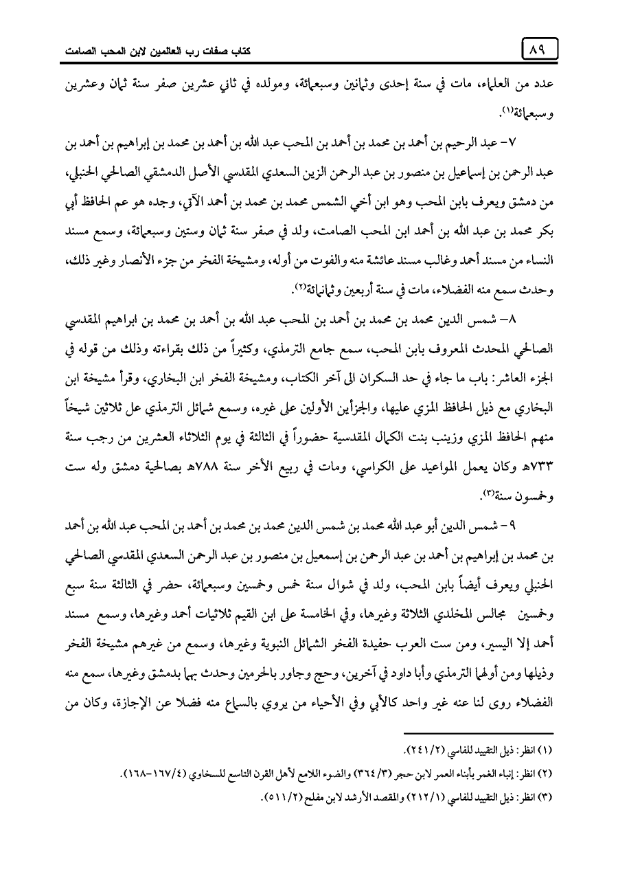 (¬٣) انظر: ذيل التقييد للفاسي (١/ ٢١٢) والمقصد الأرشد لابن مفلح (٢/ ٥١١).