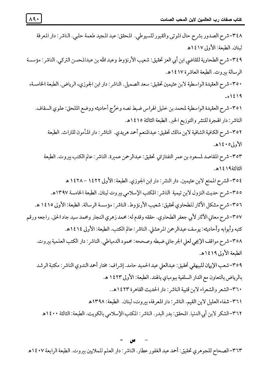 ٣٥٠ - شرح العقيدة الواسطية لابن عثيمين تحقيق: سعد الصميل. الناشر: دار ابن الجوزي، الرياض. الطبعة الخامسة، ١٤١٩ هـ.