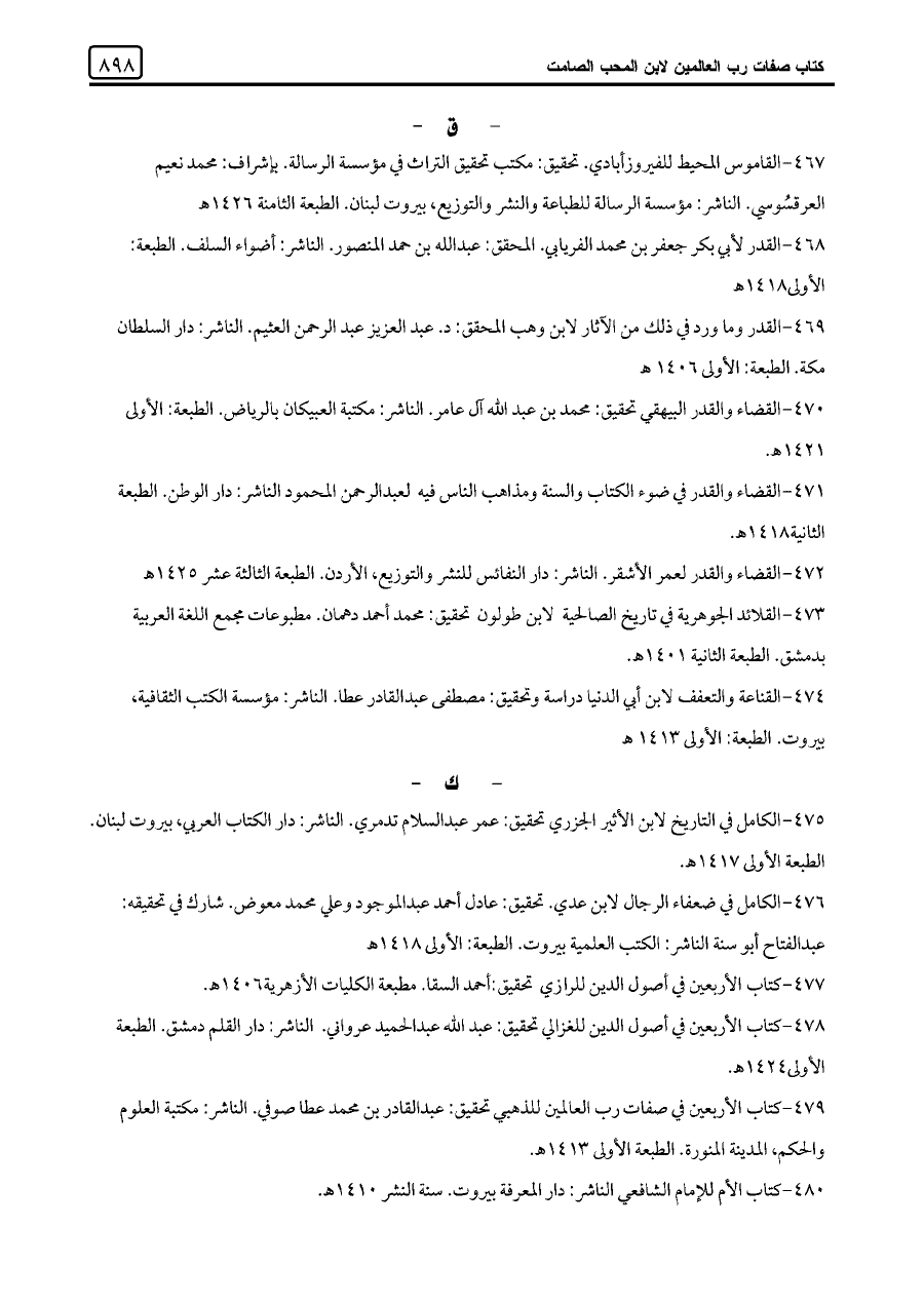 ٤٧٩ - كتاب الأربعين في صفات رب العالمين للذهبي تحقيق: عبد القادر بن محمد عطا صوفي. الناشر: مكتبة العلوم والحكم، المدينة المنورة. الطبعة الأولى ١٤١٣ هـ.