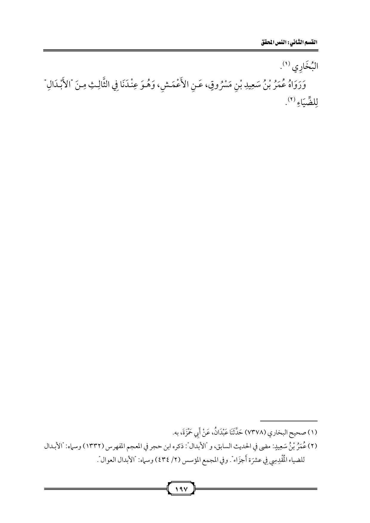 (¬٢) عُمَرُ بْنُ سَعِيدٍ: مضى في الحديث السابق، و "الأبدال": ذكره ابن حجر في المعجم المفهرس (١٣٣٢) وسماه: "الأبدال للضياء الْمَقْدِسِي فِي عشرَة أَجزَاء". وفي المجمع المؤسس (٢/ ٤٣٤) وسماه: "الأبدال العوال".