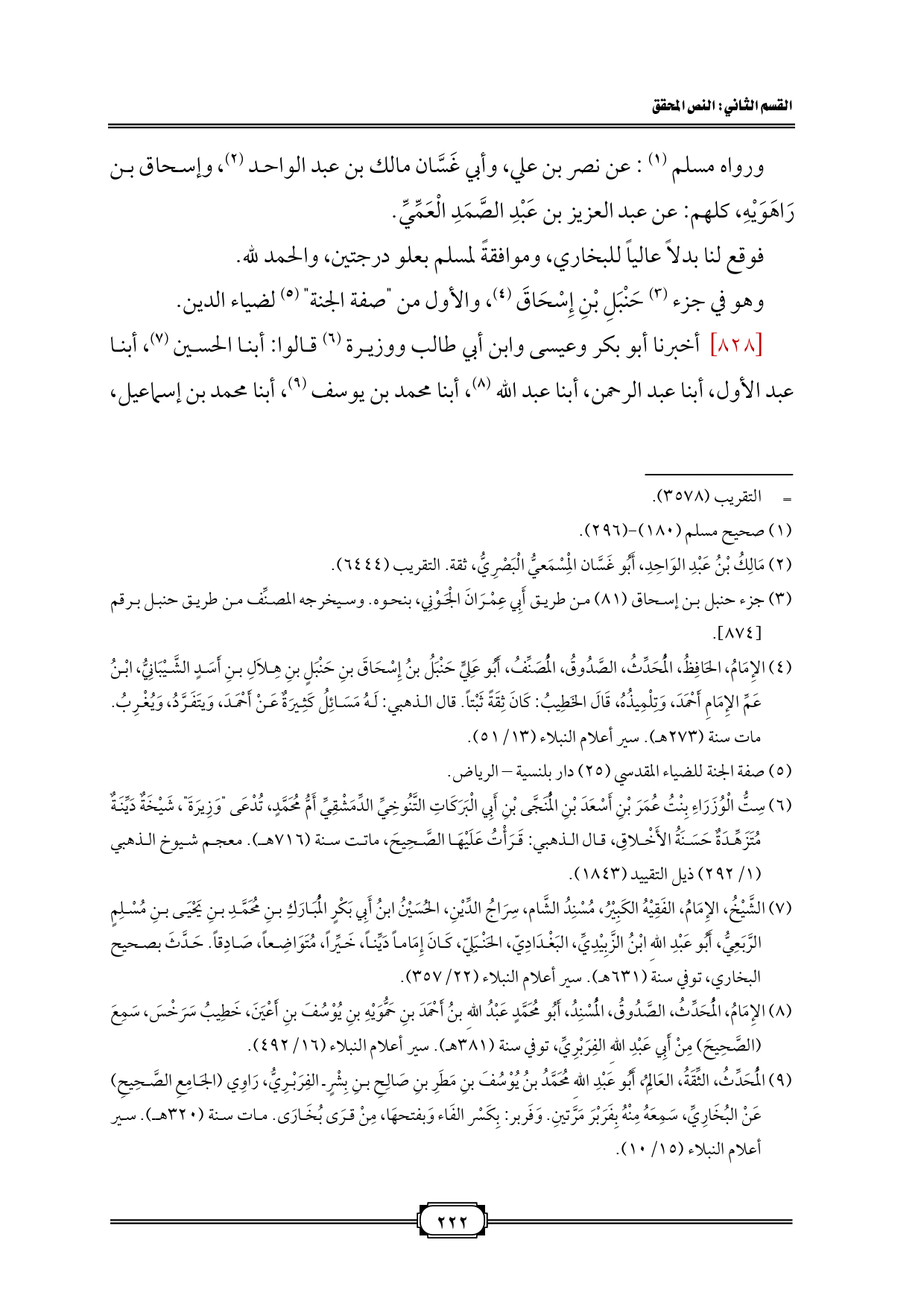 (¬٥) صفة الجنة للضياء المقدسي (٢٥) دار بلنسية - الرياض.