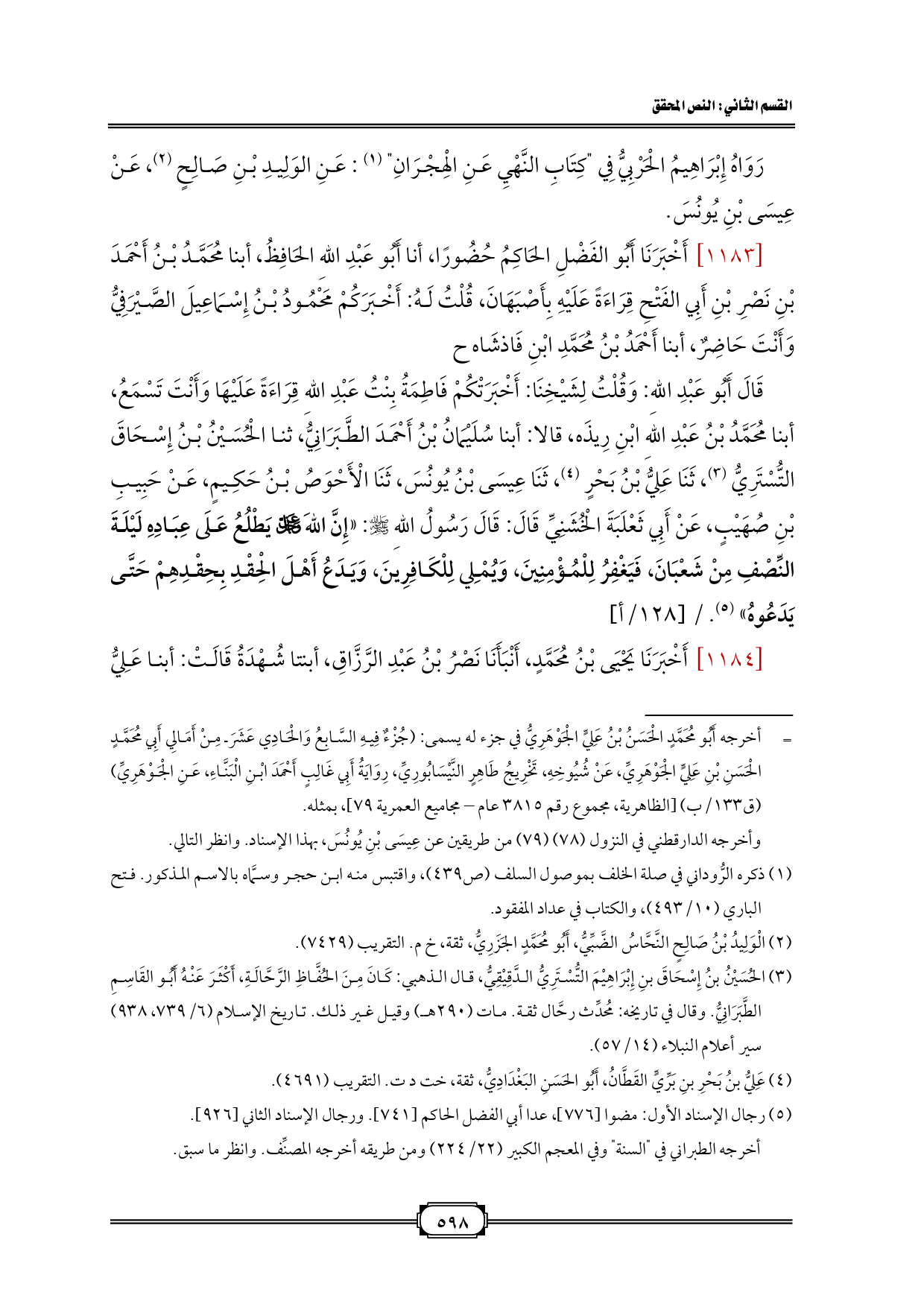 (¬٥) رجال الإسناد الأول: مضوا [٧٧٦]، عدا أبي الفضل الحاكم [٧٤١]. ورجال الإسناد الثاني [٩٢٦].