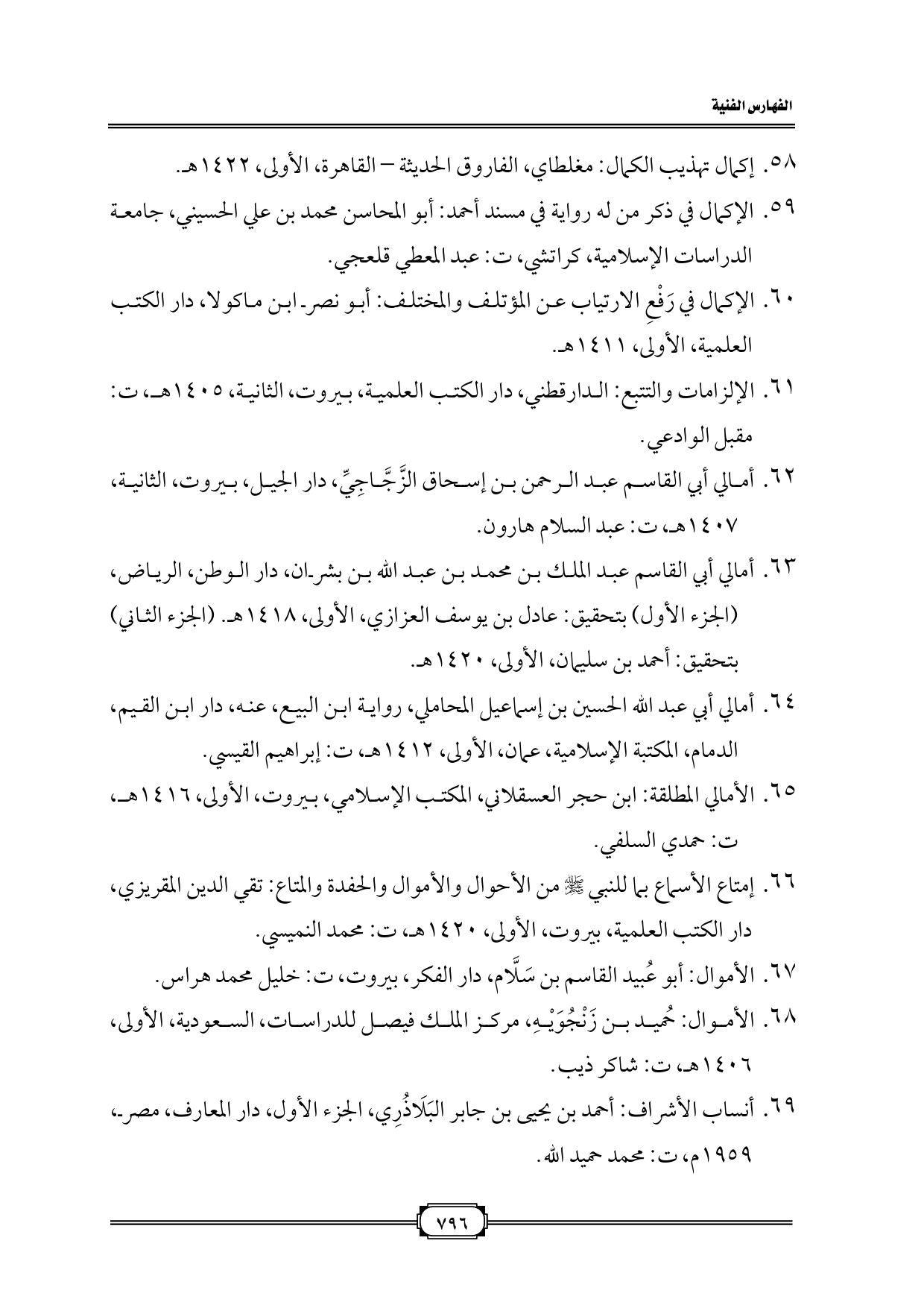 ٥٨. إكمال تهذيب الكمال: مغلطاي، الفاروق الحديثة - القاهرة، الأولى، ١٤٢٢ هـ.